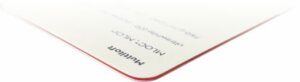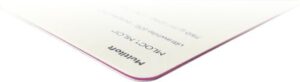 • vizitka ima barvno sredico v različnih barvah, ki se lahko ujemajo z barvo tiska na vizitki